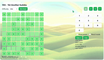 Relax with one of the most loved puzzles of all time, now with a clean, intuitive, and cross-platform experience. YASudoku is designed for both casual players and enthusiasts: no frills, no distractions—just the classic 9x9 grid.